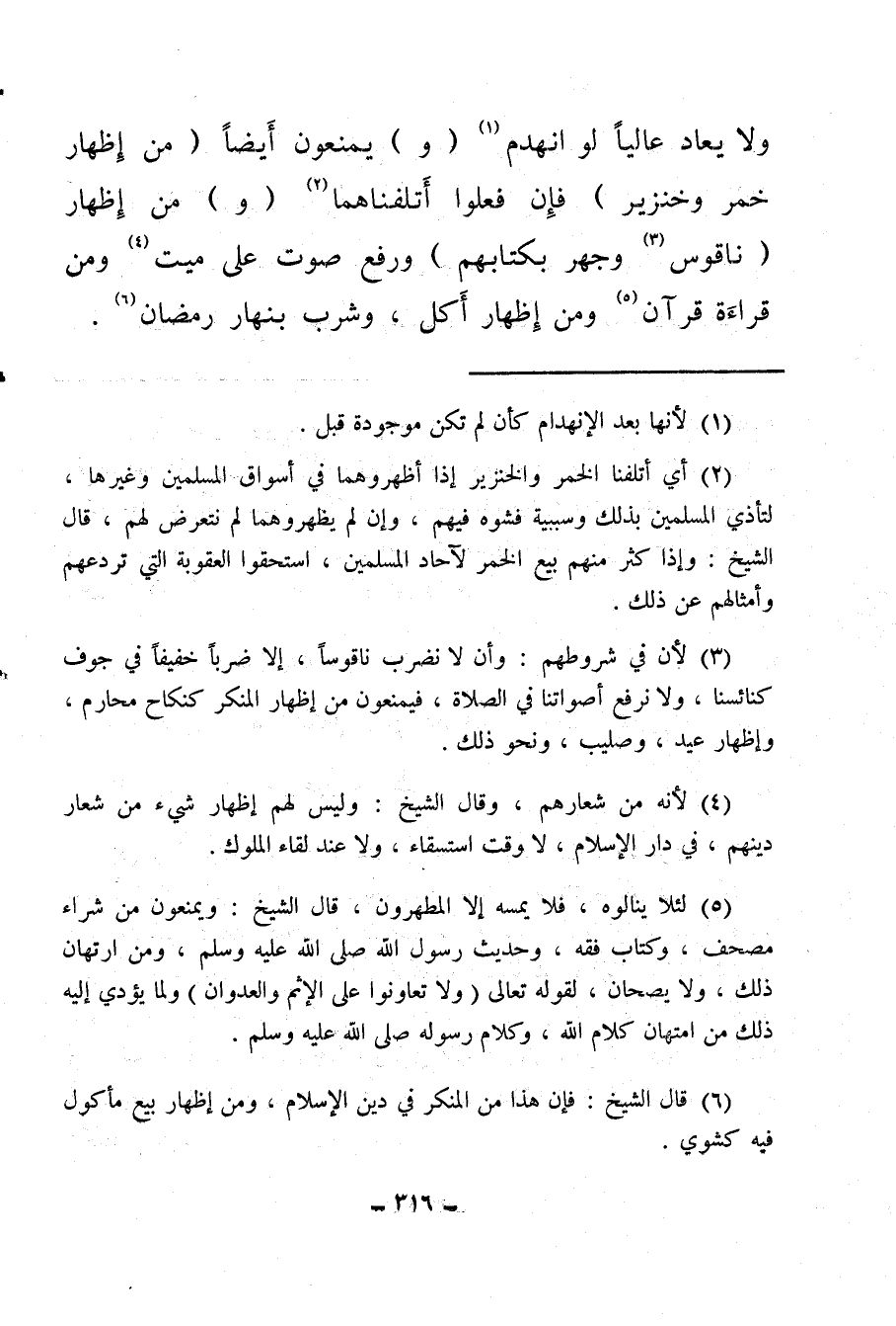 (¬6) قال الشيخ: فإن هذا من المنكر في دين الإسلام، ومن إظهار بيع مأكول فيه كشوي.