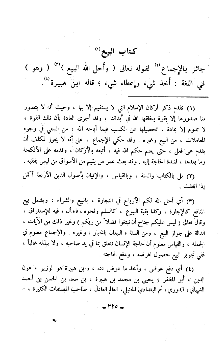 (¬4) أي دفع عوض، وأخذ ما عوض عنه، وابن هبيرة هو الوزير، عون الدين، أبو المظفر، يحيى بن محمد بن هبيرة، بن سعد بن الحسن بن أحمد الشيباني