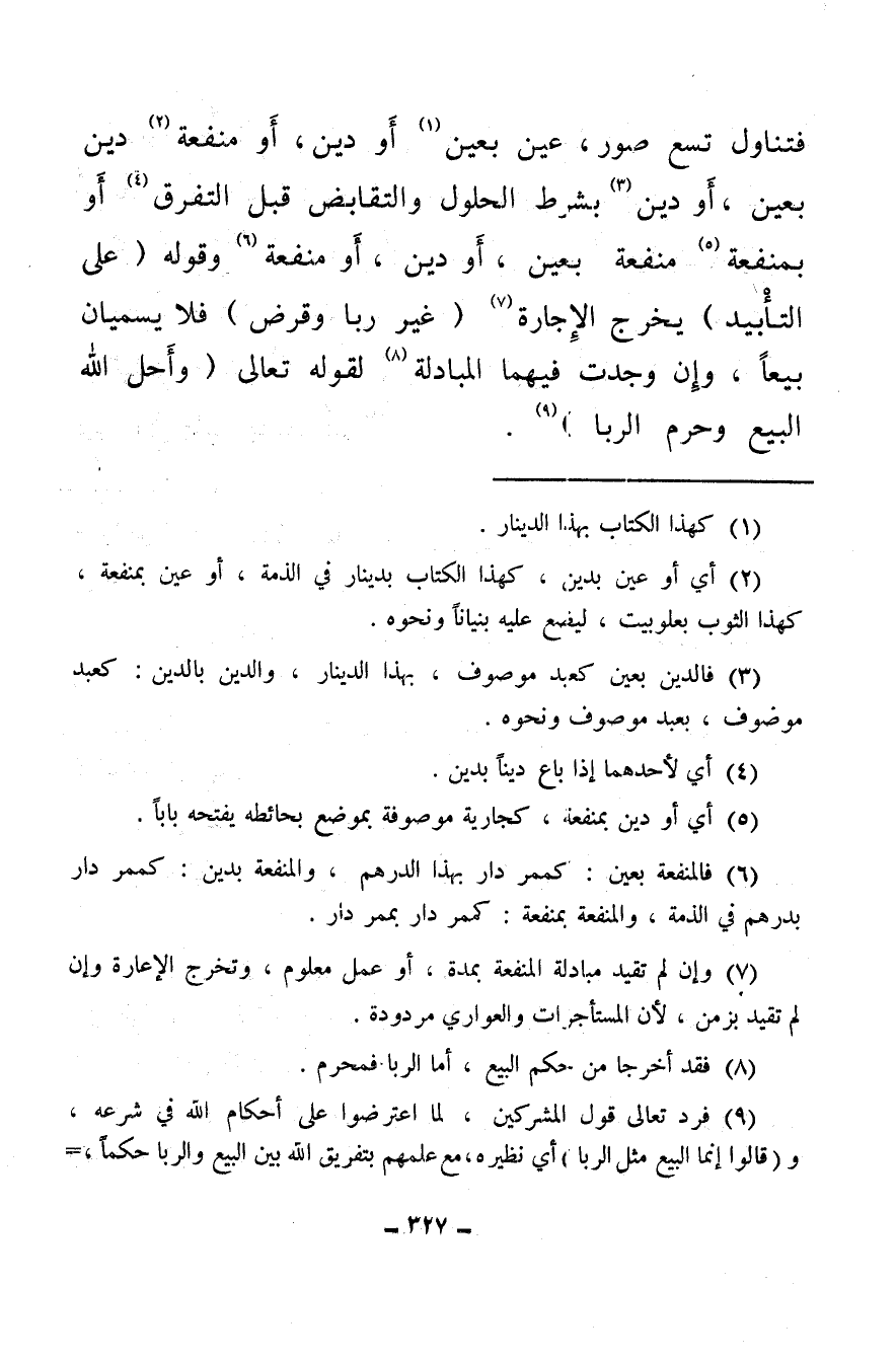 (¬6) فالمنفعة بعين: كممر دار بهذا الدرهم، والمنفعة بدين: كممر دار بدرهم في الذمة، والمنفعة بمنفعة: كممر دار بممر دار.