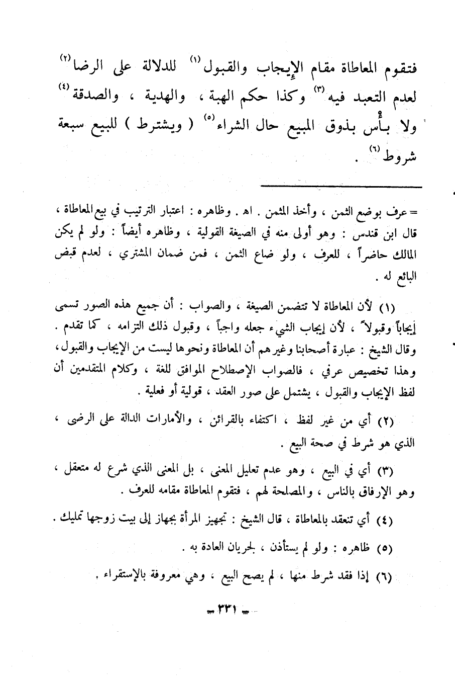 (¬1) لأن المعاطاة لا تتضمن الصيغة، والصواب، أن جميع هذه الصور تسمى إيجابا وقبولا، لأن إيجاب الشيء جعله واجبًا، وقبول ذلك التزامه، كما تقدم، وقال الشيخ: عبارة أصحابنا وغيرهم أن المعاطاة ونحوها ليست من الإيجاب والقبول، وهذا تخصيص عرفي، فالصواب الاصطلاح الموافق للغة، وكلام المتقدمين أن لفظ الإيجاب والقبول، يشتمل على صور العقد، قولية أو فعلية.