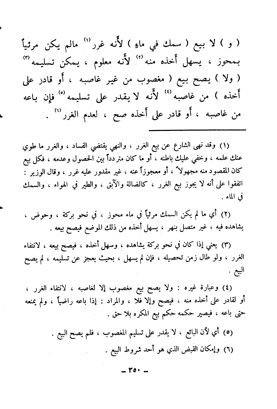 (¬3) يعني إذا كان في نحو بركة يشاهده، وسهل أخذه، فيصح بيعه، لانتفاء الغرر، ولو طال زمن تحصيله، فإن لم يسهل، بحيث يعجز عن تسليمه لم يصح البيع.