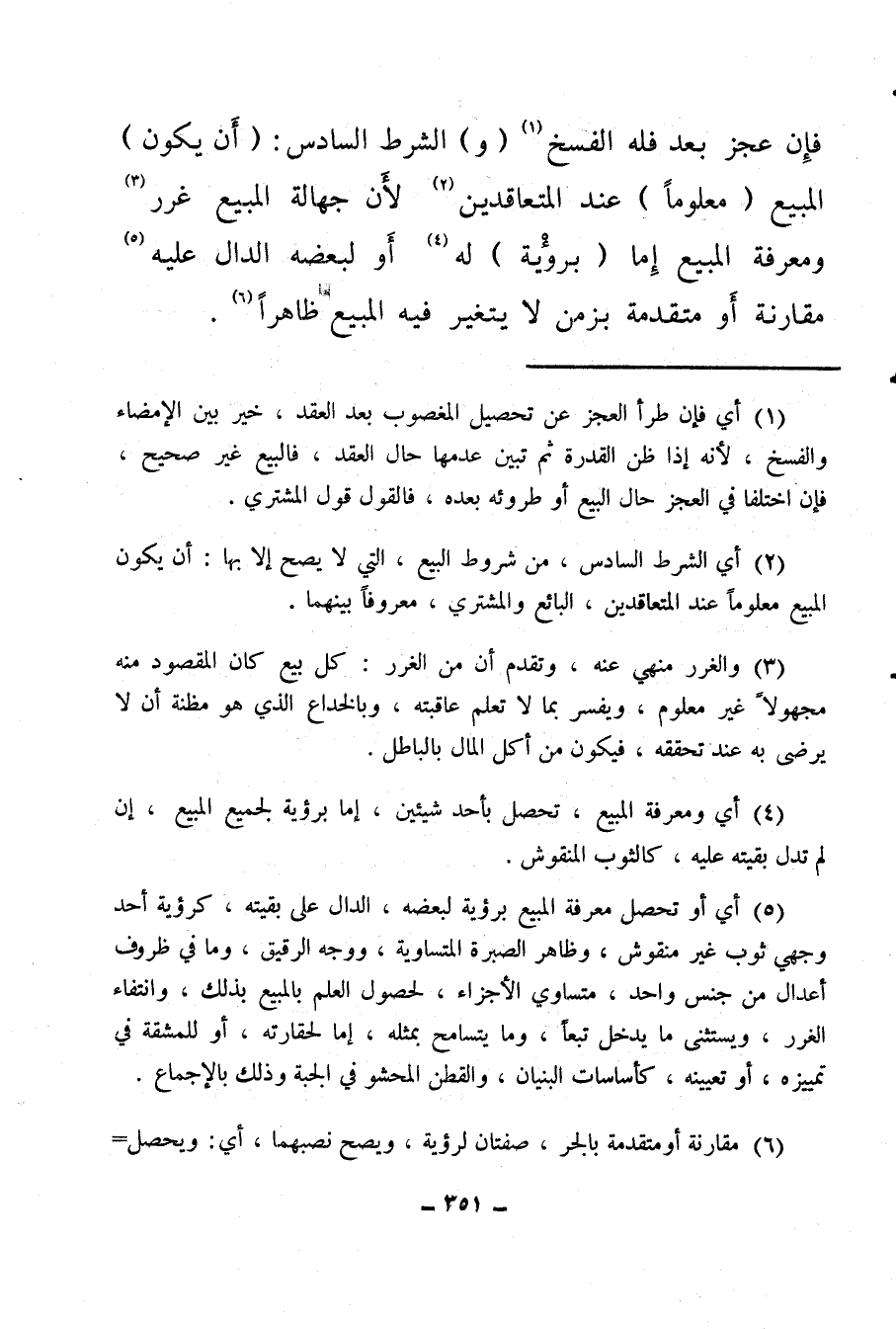 (¬2) أي الشرط السادس، من شروط البيع، التي لا يصح إلا بها، أن يكون المبيع معلومًا عند المتعاقدين، البائع والمشتري، معروفًا بينهما.