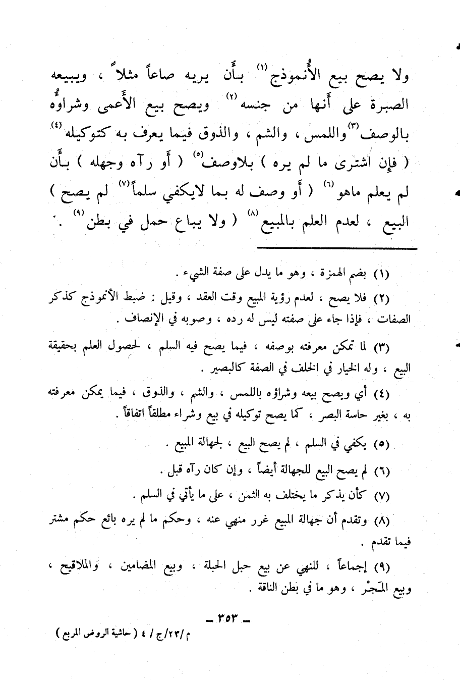 (¬5) يكفي في السلم، لم يصح البيع، لجهالة المبيع.