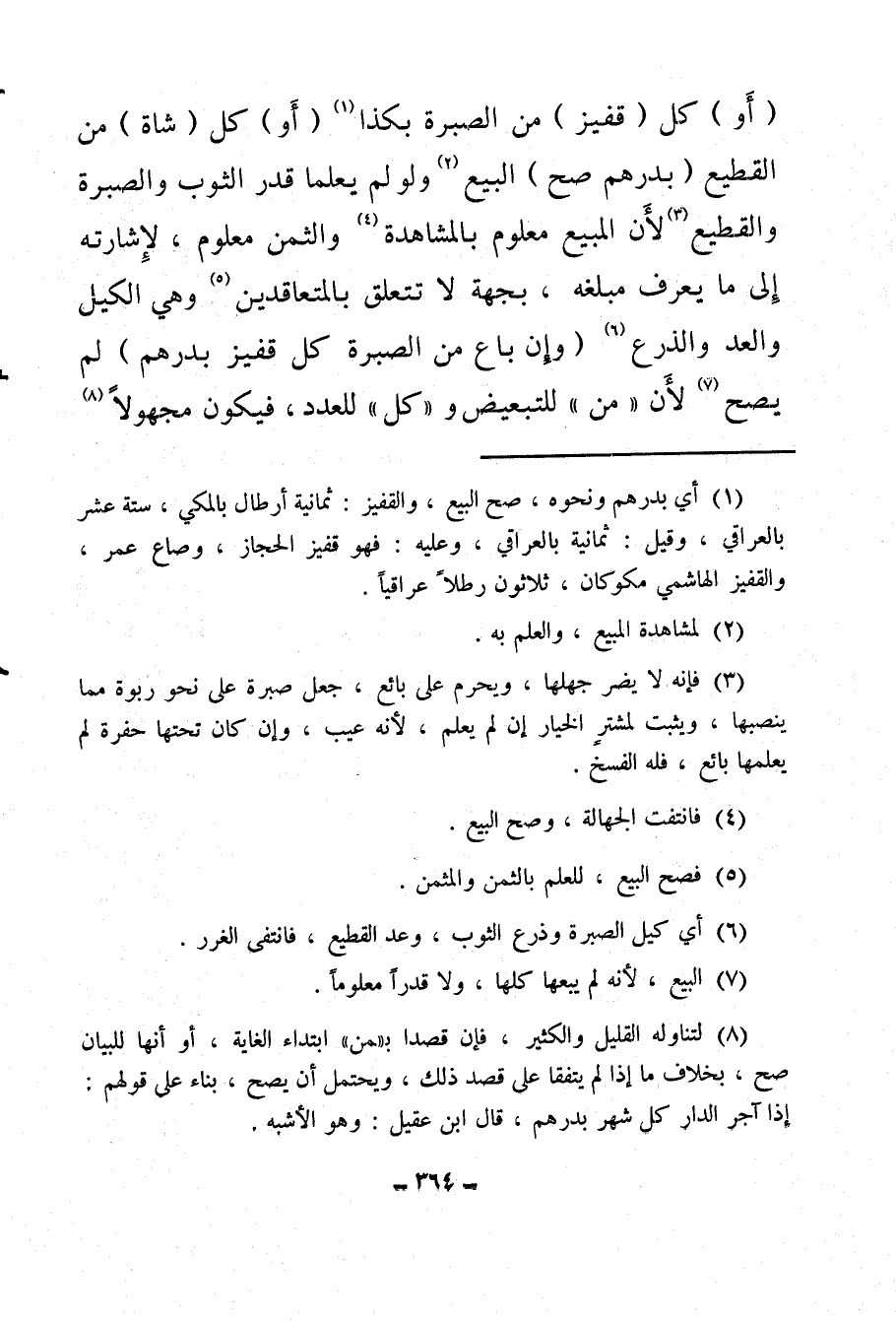(¬1) أي بدرهم ونحوه، صح البيع، والقفيز: ثمانية أرطال بالمكي، ستة عشر بالعراقي، وقيل: ثمانية بالعراقي، وعليه: فهو قفيز الحجاز، وصاع عمر، والقفيز الهاشمي مكوكان، ثلاثون رطلاً عراقيًا.