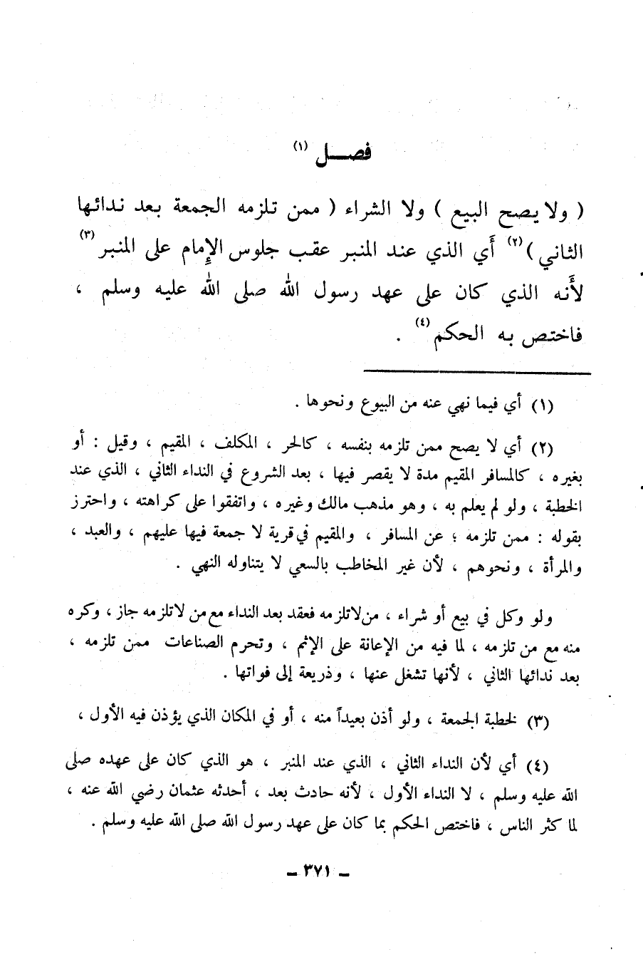 (ولا يصح البيع) ولا الشراء (ممن تلزمه الجمعة بعد ندائها الثاني) (¬2) أي الذي عند المنبر عقب جلوس الإمام على المنبر (¬3) لأنه الذي كان على عهد رسول الله صلى الله عليه وسلم فاختص به الحكم (¬4) .