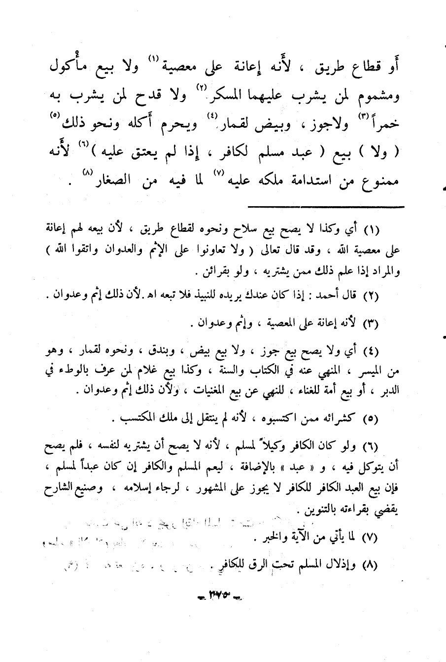 أو قطاع طريق، لأنه إعانة على معصية (¬1) ولا بيع مأكول ومشموم لمن يشرب عليهما المسكر (¬2) ولا قدح لمن يشرب به خمرا (¬3) ولا جوز، وبيض لقمار (¬4) ويحرم أكله ونحو ذلك (¬5) (ولا) بيع (عبد مسلم لكافر، إذا لم يعتق عليه) (¬6) لأنه ممنوع من استدامة ملكه عليه (¬7) لما فيه من الصغار (¬8) .