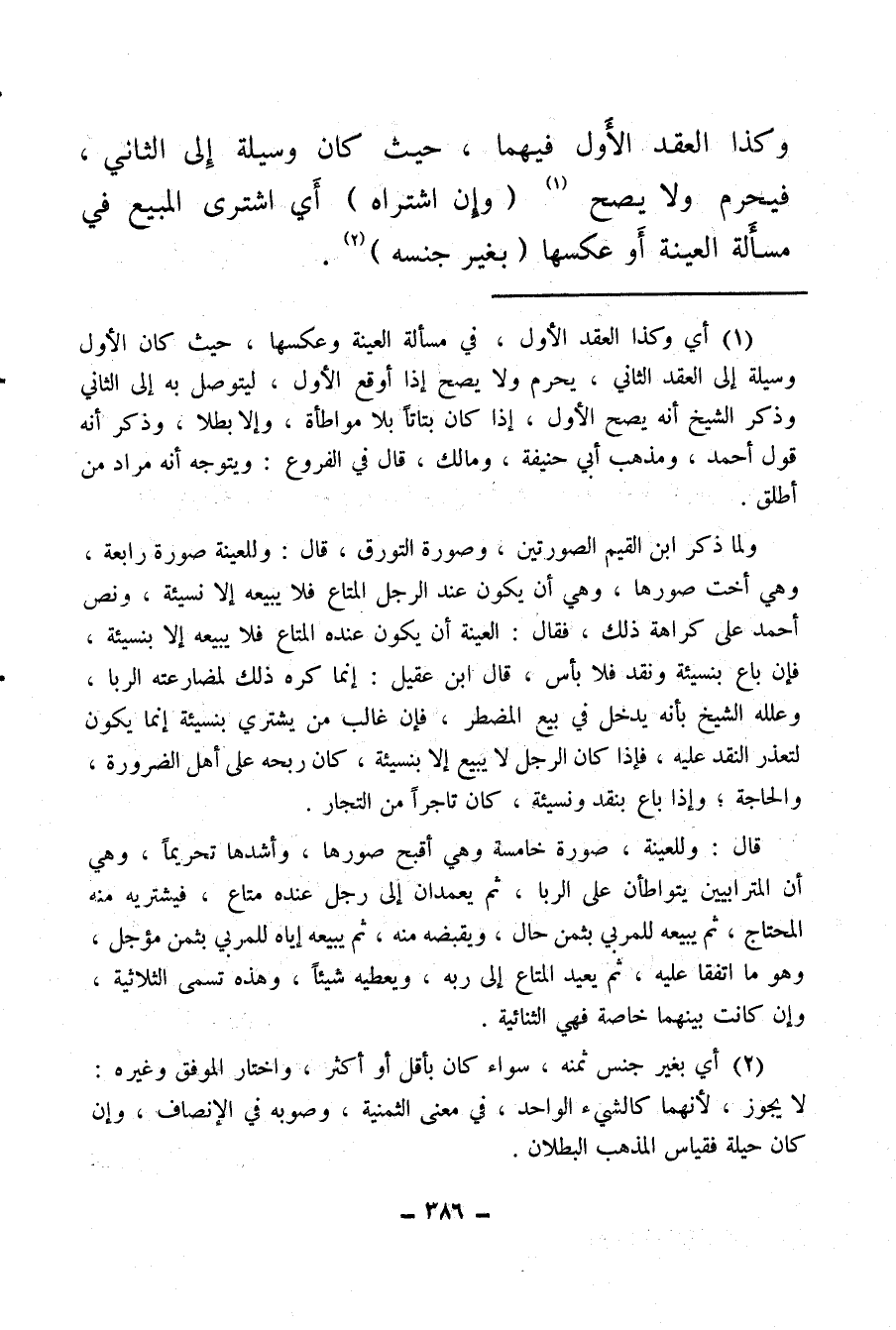 (¬1) أي وكذا العقد الأول، في مسألة العينة وعكسها، حيث كان الأول وسيلة إلى العقد الثاني، يحرم ولا يصح إذا أوقع الأول، ليتوصل به إلى الثاني وذكر الشيخ أنه يصح الأول، إذا كان بتاتًا بلا مواطأة، وإلا بطلا، وذكر أنه قول أحمد، ومذهب أبي حنيفة، ومالك، قال في الفروع: ويتوجه أنه مراد من أطلق.
