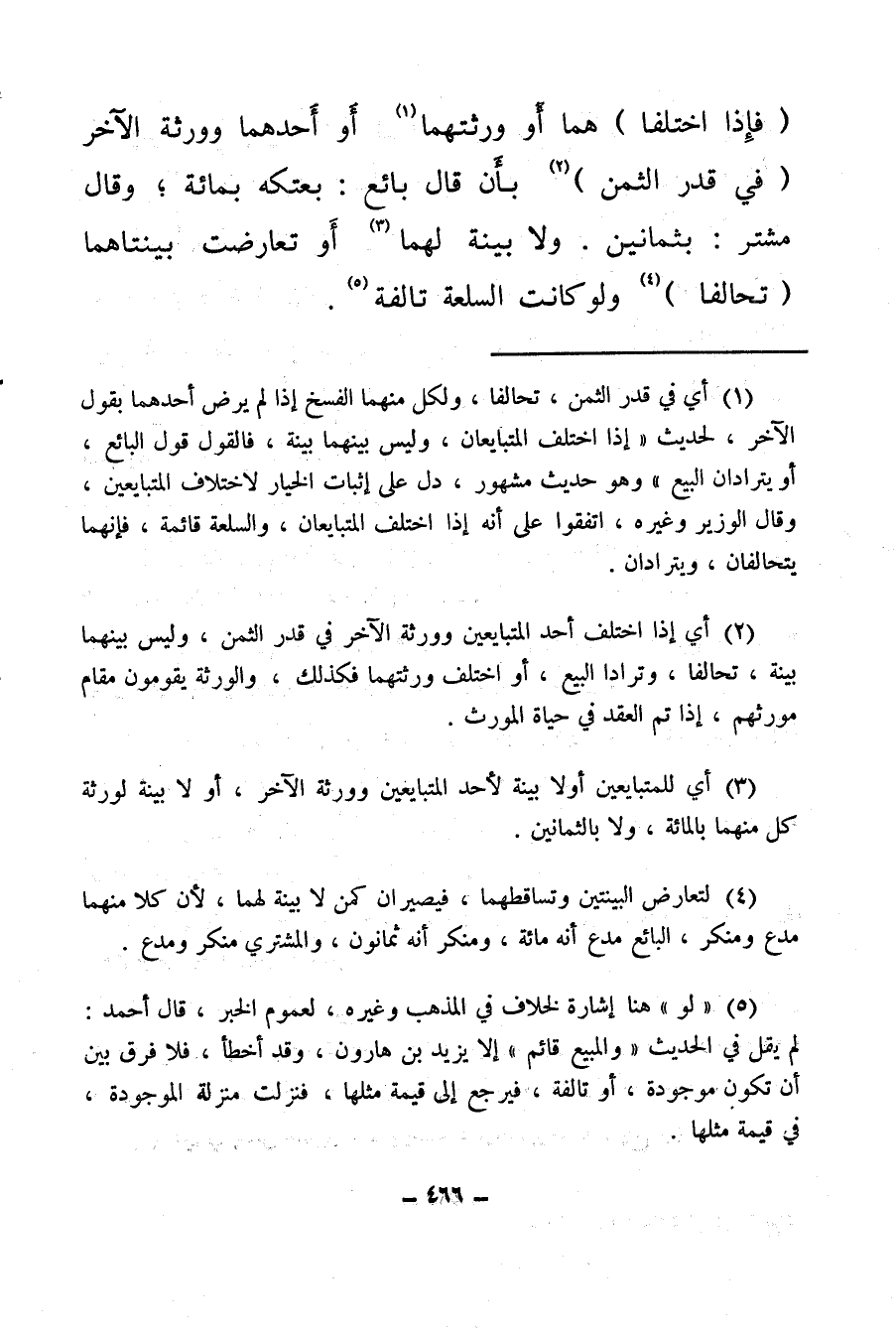 (¬4) لتعارض البينتين وتساقطهما، فيصيران كمن لا بينة لهما، لأن كلا منهما مدع ومنكر، البائع مدع أنه مائة، ومنكر أنه ثمانون، والمشتري منكر ومدع.