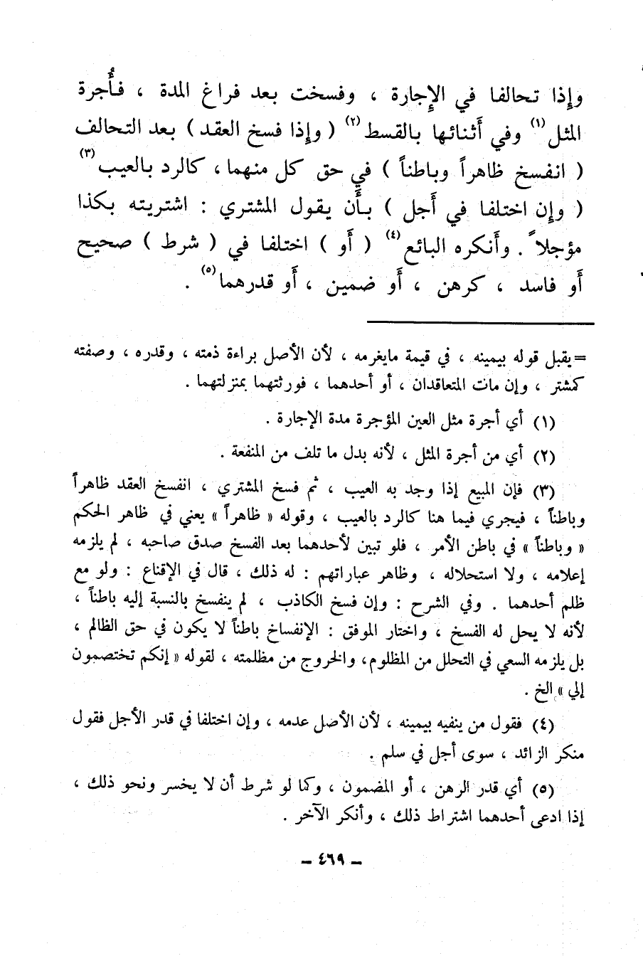 (¬3) فإن المبيع إذا وجد به العيب، ثم فسخ المشتري، انفسخ العقد ظاهرا وباطنا، فيجري فيما هنا كالرد بالعيب، وقوله «ظاهرا» يعني في ظاهر الحكم «وباطنا» في باطن الأمر، فلو تبين لأحدهما بعد الفسخ صدق صاحبه، لم يلزمه إعلامه، ولا استحلاله، وظاهر عباراتهم: له ذلك، قال في الإقناع: ولو مع ظلم أحدهما، وفي الشرح: وإن فسخ الكاذب، لم ينفسخ بالنسبة إليه باطنا لأنه لا يحل له الفسخ، واختار الموفق، الانفساخ باطنا لا يكون في حق الظالم، بل يلزمه السعي في التحلل من المظلوم، والخروج من مظلمته، لقوله: «إنكم تختصمون إلي» إلخ.
