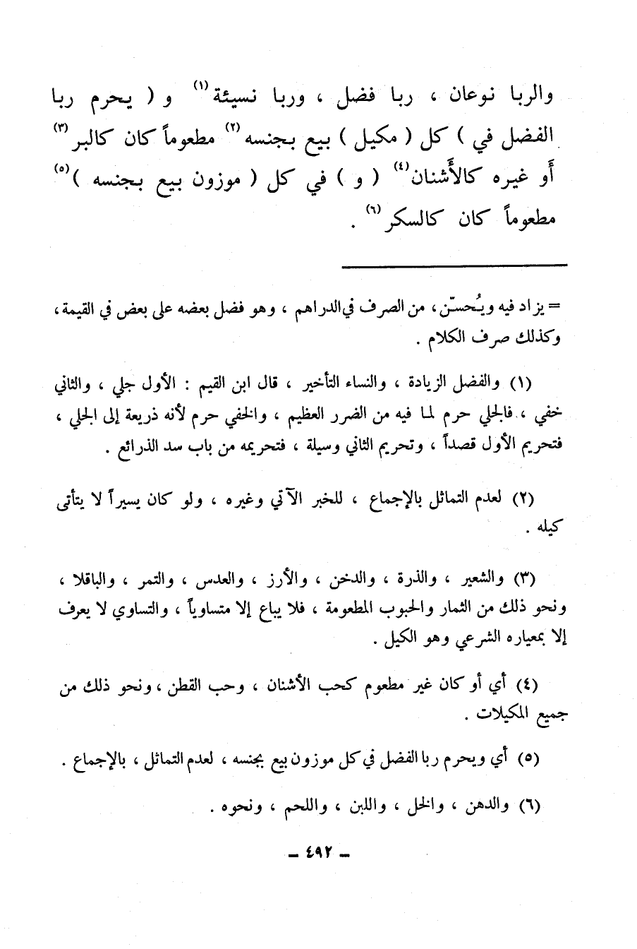(¬1) والفضل الزيادة، والنساء التأخير، قال ابن القيم: الأول جلي، والثاني خفي، فالجلي حرم لما فيه من الضرر العظيم، والخفي حرم لأنه ذريعة إلى الجلي، فتحريم الأول قصدا، وتحريم الثاني وسيلة فتحريمه من باب سد الذرائع.
