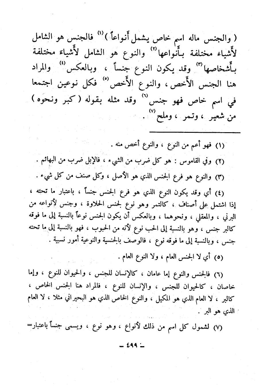 (¬3) والنوع هو فرع الجنس الذي هو الأصل، وكل صنف من كل شيء.