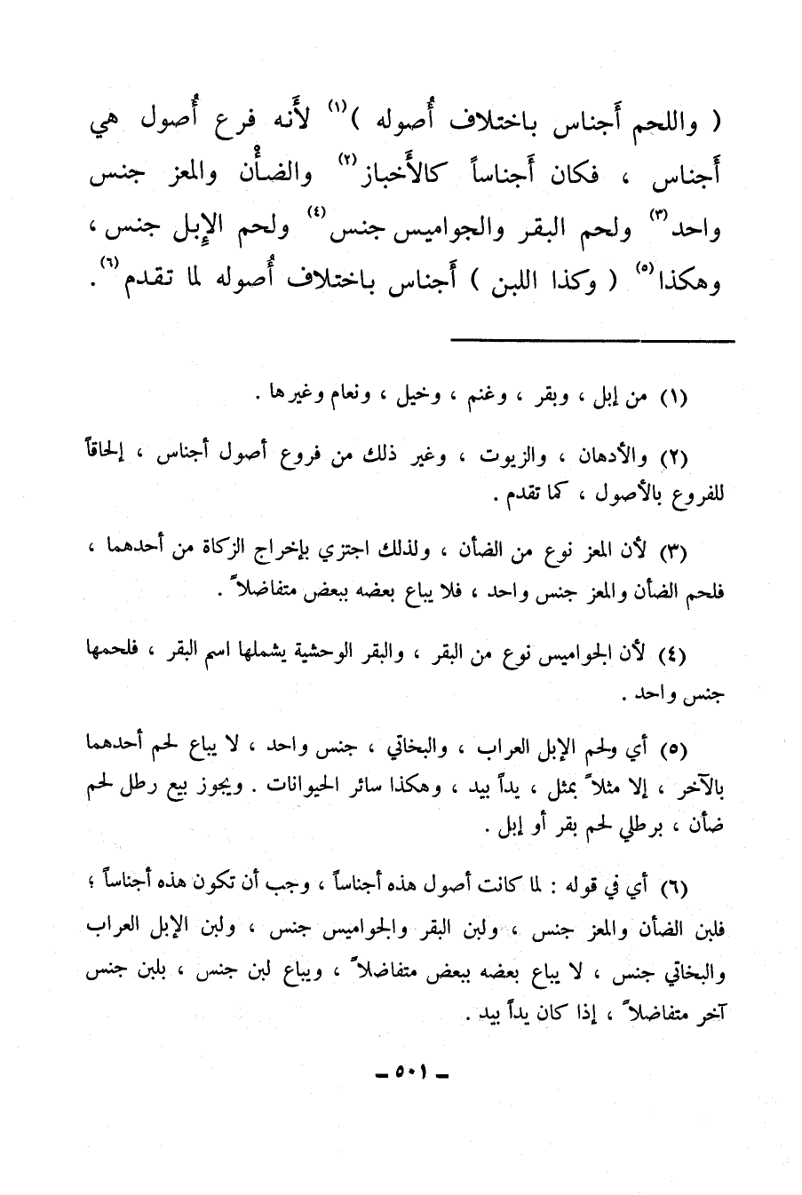 (¬4) لأن الجواميس نوع من البقر، والبقر الوحشية يشملها اسم البقر فلحمها جنس واحد.