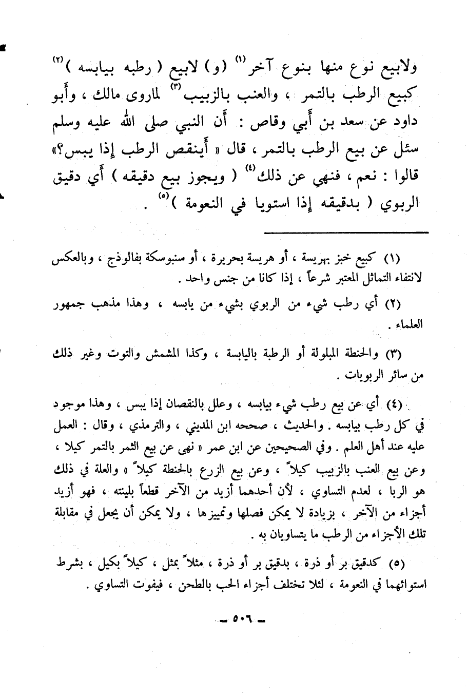 (¬5) كدقيق بر أو ذرة بدقيق بر أو ذرة، مثلا بمثل، كيلا بكيل، بشرط أستوائهما في النعومة، لئلا تختلف أجزاء الحب بالطحن، فيفوت التساوي.