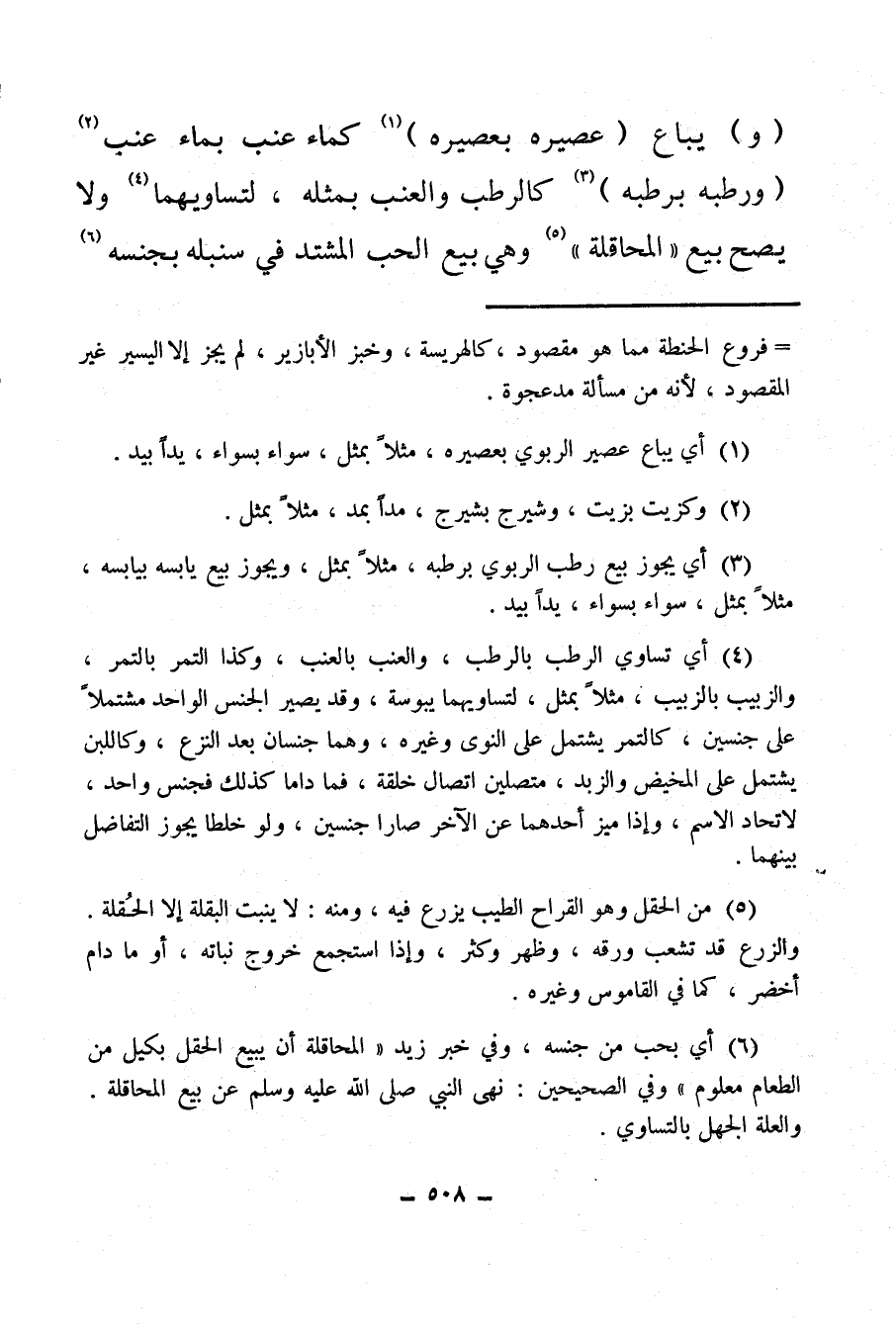 (¬1) أي يباع عصير الربوي بعصيره، مثلا بمثل، سواء بسواء، يدا بيد.