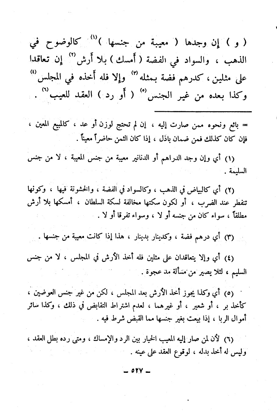 (¬4) أي وإلا يتعاقدان على مثلين فله أخذ الأرش في المجلس، لا من جنس السليم لئلا يصير من مسألة مد عجوة.