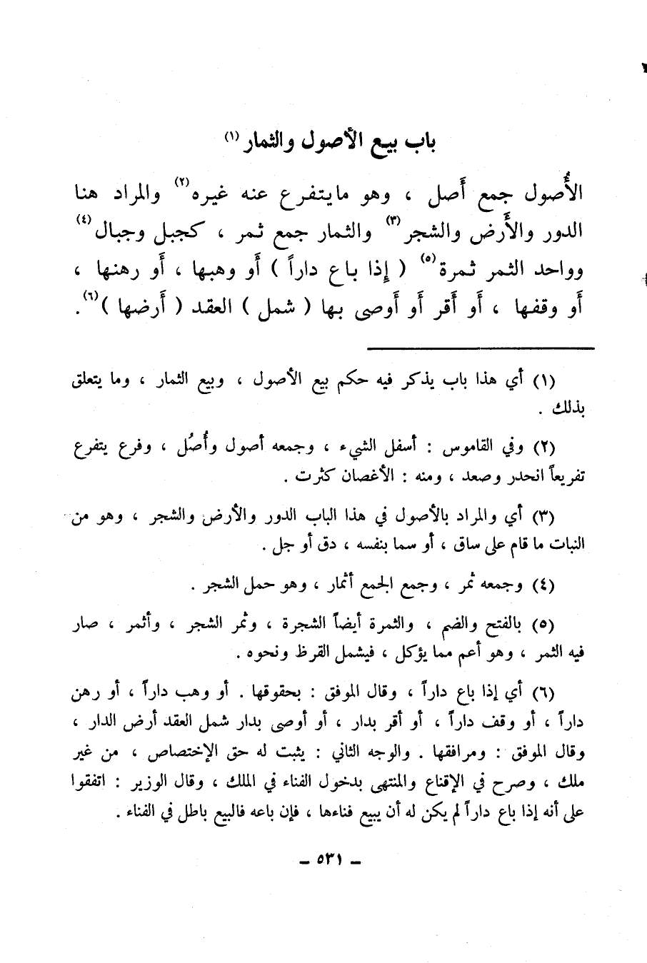 (¬3) أي والمراد بالأصول في هذا الباب الدور والأرض والشجر، وهو من النبات ما قام على ساق، أو سما بنفسه، دق أو جل.