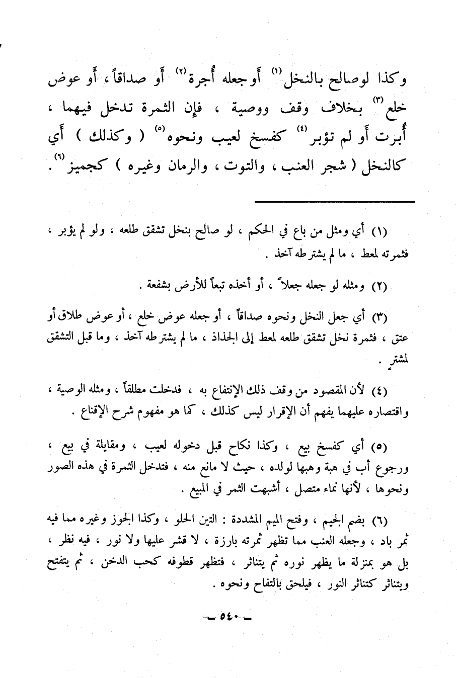 (¬3) أي جعل النخل ونحوه صداقا، أو جعله عوض خلع، أو عوض طلاق أو عتق، فثمرة نخل تشقق طلعه لمعط إلى الجذاذ، ما لم يشترطه آخذ وما قبل التشقق لمشتر.