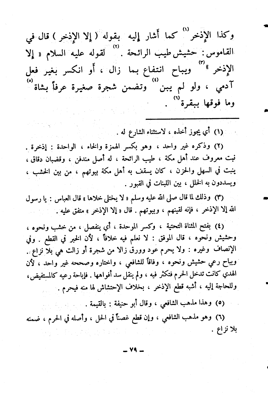 (¬3) وذلك لما قال صلى الله عليه وسلم «لا يختلي خلاها» قال العباس: يا رسول الله إلا الإذخر، فإنه لقينهم، وبيوتهم، قال «إلا الإذخر» ، متفق عليه.