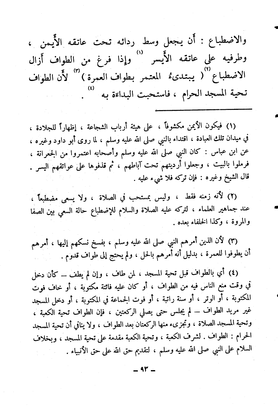(¬2) لأنه زمنه فقط، وليس بمستحب في الصلاة، ولا يسعى مضطبعا عند جماهير العلماء، لتركه عليه الصلاة والسلام للاضطباع حالة السعي بين الصفا والمروة، وكذا الخلفاء بعده.
