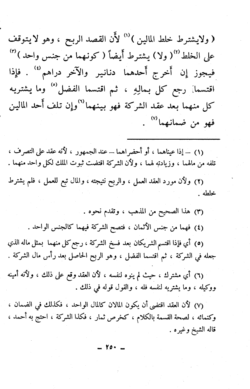 (¬5) أي فإذا اقتسم الشريكان بعد فسخ الشركة، رجع كل منهما بمثل ماله الذي جعله في الشركة، ثم اقتسما الفضل، وهو الربح الحاصل بعد رأس مال الشركة.