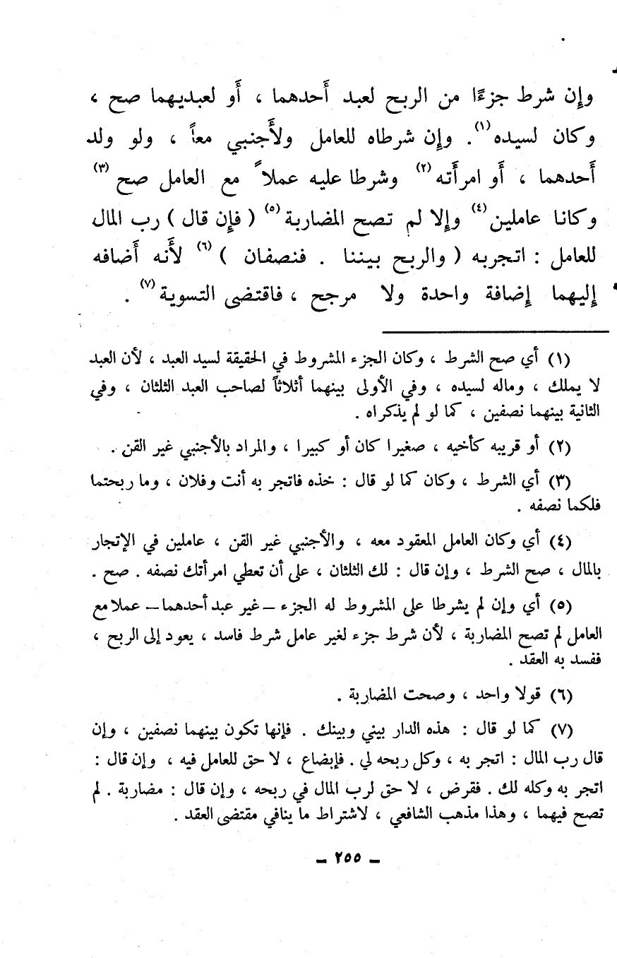 (¬3) أي الشرط، وكان كما لو قال: خذه فاتجر به أنت وفلان، وما ربحتما فلكما نصفه.