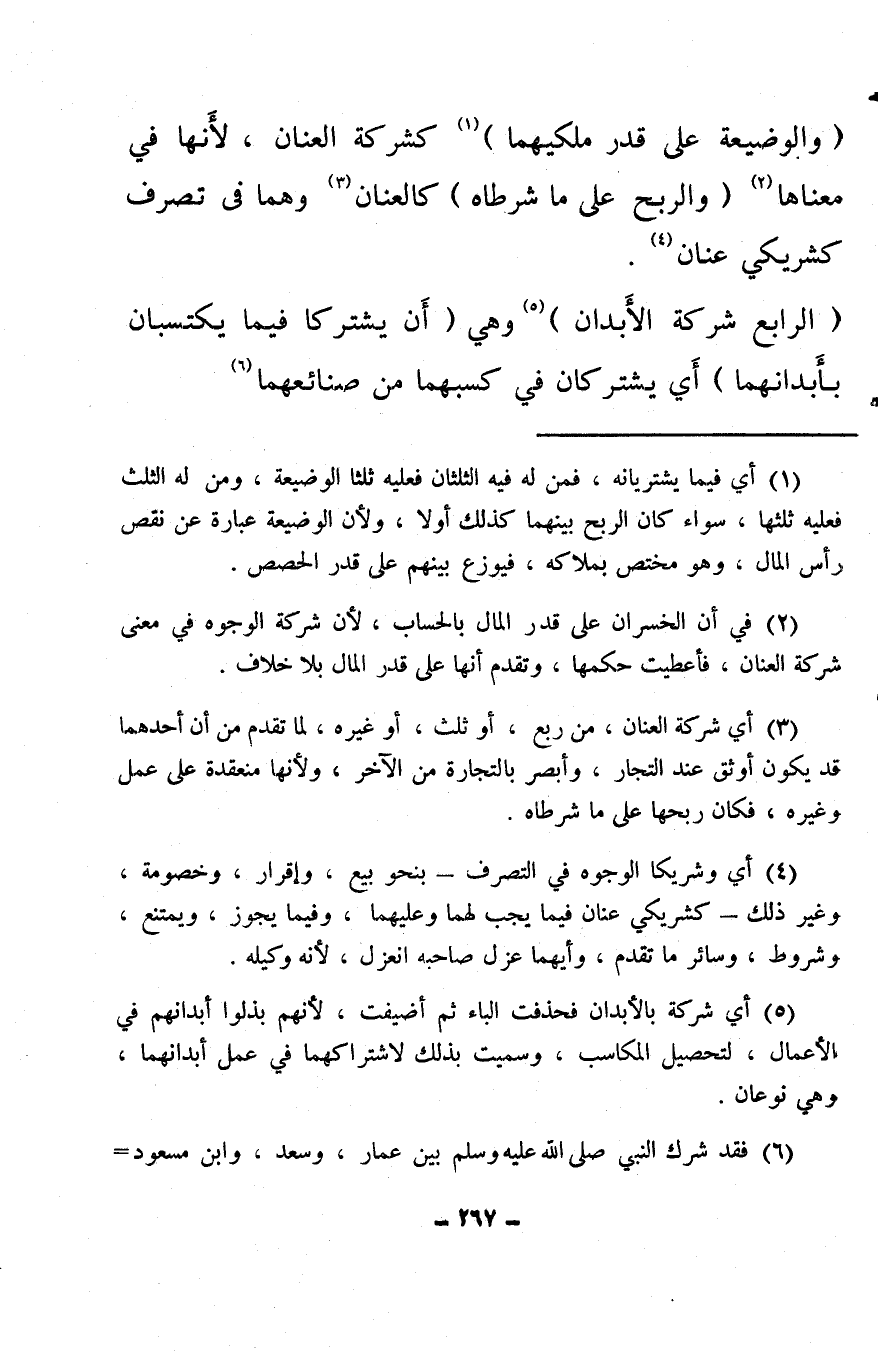 (¬5) أي شركة بالأبدان فحذفت الباء ثم أضيفت، لأنهم بذلوا أبدانهم في الأعمال، لتحصيل المكاسب، وسميت بذلك لاشتراكهما في عمل أبدانهما، وهي نوعان.