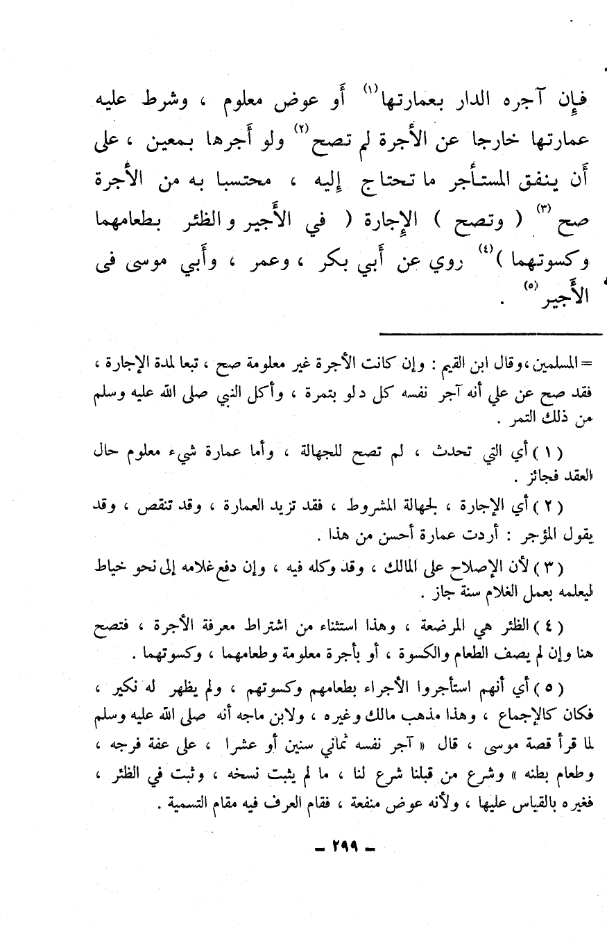 فإن آجره الدار بعمارتها (¬1) أو عوض معلوم، وشرط عليه عمارتها خارجا عن الأجرة لم تصح (¬2) ولو أجرها بمعين، على أن ينفق المستأجر ما تحتاج إليه، محتسبًا به من الأجرة صح (¬3) (وتصح) الإجارة (في الأَجير والظئر بطعامهما وكسوتهما) (¬4) روي عن أبي بكر، وعمر، وأبي موسى في الأجير (¬5) .