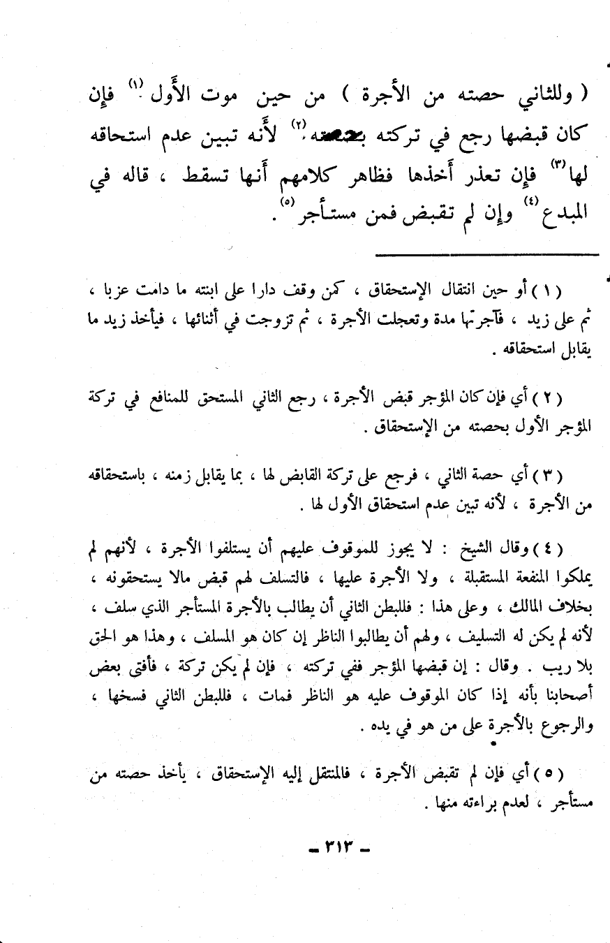 (¬1) أو حين انتقال الاستحقاق، كمن وقف دارا على ابنته ما دامت عزبا، ثم على زيد، فآجرتها مدة وتعجلت الأجرة، ثم تزوجت في أثنائها، فيأخذ زيد ما يقابل استحقاقه.