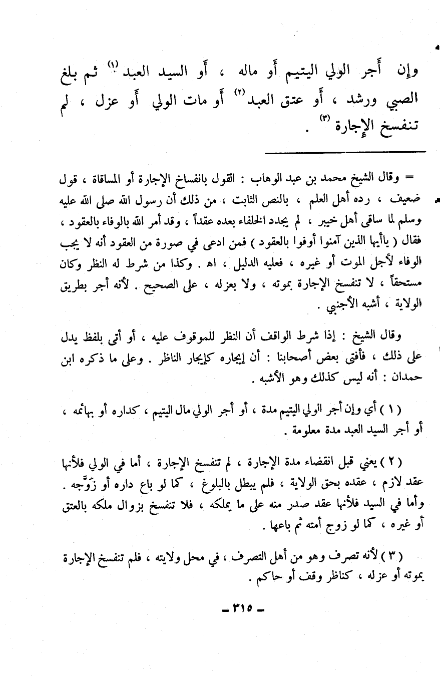 (¬2) يعني قبل انقضاء مدة الإجارة، لم تنفسخ الإجارة، أما في الولي فلأنها عقد لازم، عقده بحق الولاية، فلم يبطل بالبلوغ، كما لو باع داره أو زَوَّجه. وأما في السيد فلأنها عقد صدر منه على ما يملكه، فلا تنفسخ بزوال ملكه بالعتق أو غيره، كما لو زوج أمته ثم باعها.