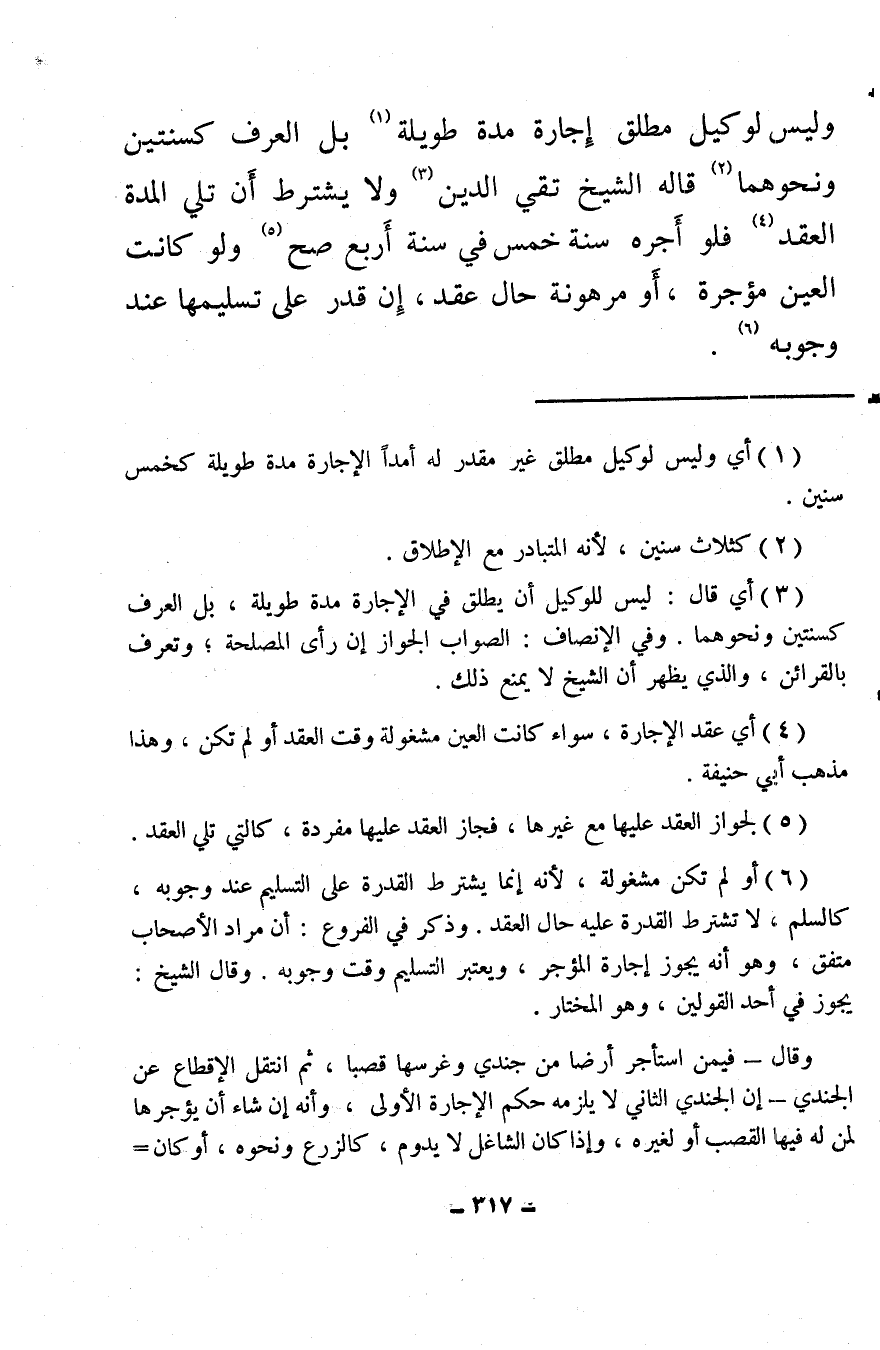 (¬3) أي قال: ليس للوكيل أن يطلق في الإجارة مدة طويلة، بل العرف كسنتين ونحوهما. وفي الإنصاف: الصواب الجواز إن رأى المصلحة؛ وتعرف بالقرائن، والذي يظهر أن الشيخ لا يمنع ذلك.