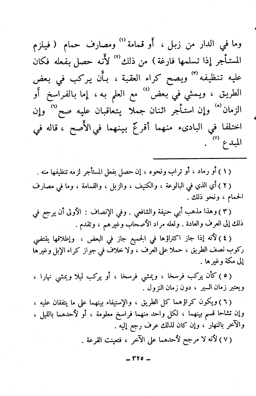 وما في الدار من زبل، أو قمامة (¬1) ومصارف حمام (فيلزم المستأجر إذا تسلمها فارغة) من ذلك (¬2) لأنه حصل بفعله فكان عليه تنظيفه (¬3) ويصح كراء العقبة، بأن يركب في بعض الطريق، ويمشي في بعض (¬4) مع العلم به، إما بالفراسخ أو الزمان (¬5) وإن استأجر اثنان جملا يتعاقبان عليه صح (¬6) وإن اختلفا في البادئ منهما أقرع بينهما في الأَصح، قاله في المبدع (¬7) .