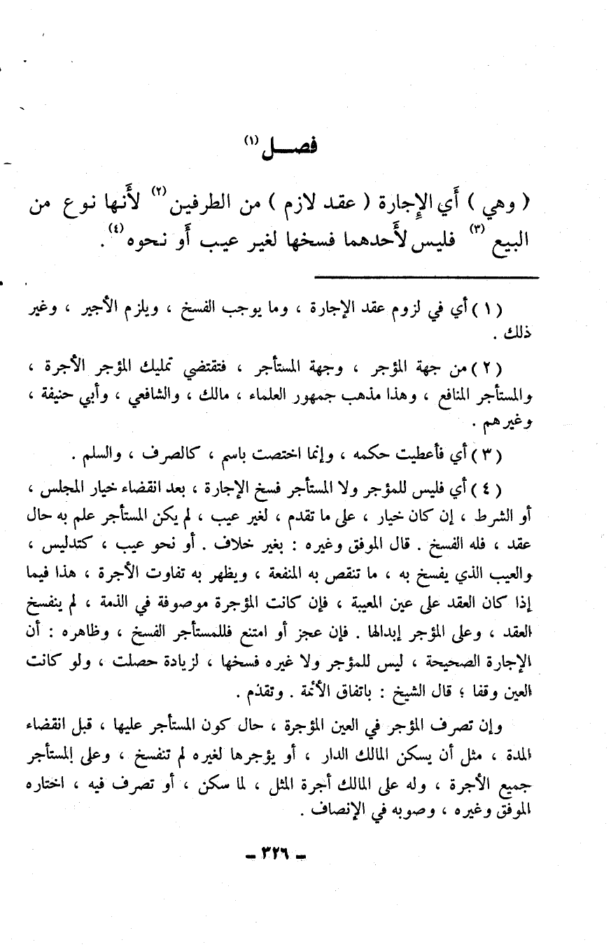 (¬4) أي فليس للمؤجر ولا المستأجر فسخ الإجارة، بعد انقضاء خيار المجلس، أو الشرط، إن كان خيار، على ما تقدم، لغير عيب، لم يكن المستأجر علم به حال عقد، فله الفسخ. قال الموفق وغيره: بغير خلاف. أو نحو عيب، كتدليس، والعيب الذي يفسخ به، ما تنقص به المنفعة، ويظهر به تفاوت الأجرة، هذا فيما إذا كان العقد على عين المعيبة، فإن كانت المؤجرة موصوفة في الذمة، لم ينفسخ العقد، وعلى المؤجر إبدالها. فإن عجز أو امتنع فللمستأجر الفسخ، وظاهره: أن الإجارة الصحيحة، ليس للمؤجر ولا غيره فسخها، لزيادة حصلت، ولو كانت العين وقفا؛ قال الشيخ: باتفاق الأئمة. وتقدم.