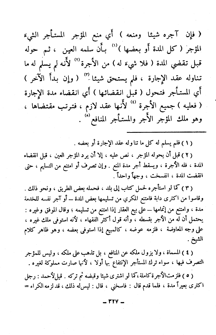 (¬3) كما لو استأجره لحمل كتاب إلى بلد، فحمله بعض الطريق، ونحو ذلك. وقاسوا من اكترى دابة فامتنع المكري من تسليمها بعض المدة – أو آجر نفسه للخدمة مدة، وامتنع من إتمامها – على بيع العقار إذا امتنع من تسليمه؛ وقال الموفق وغيره، يحتمل أن له من الأجر بقسطه، وأنه قول أكثر الفقهاء، لأنه استوفى ملك غيره، على وجه المعاوضة، فلزمه عوضه، كالمبيع إذا استوفى بعضه، وهو ظاهر كلام الشيخ.