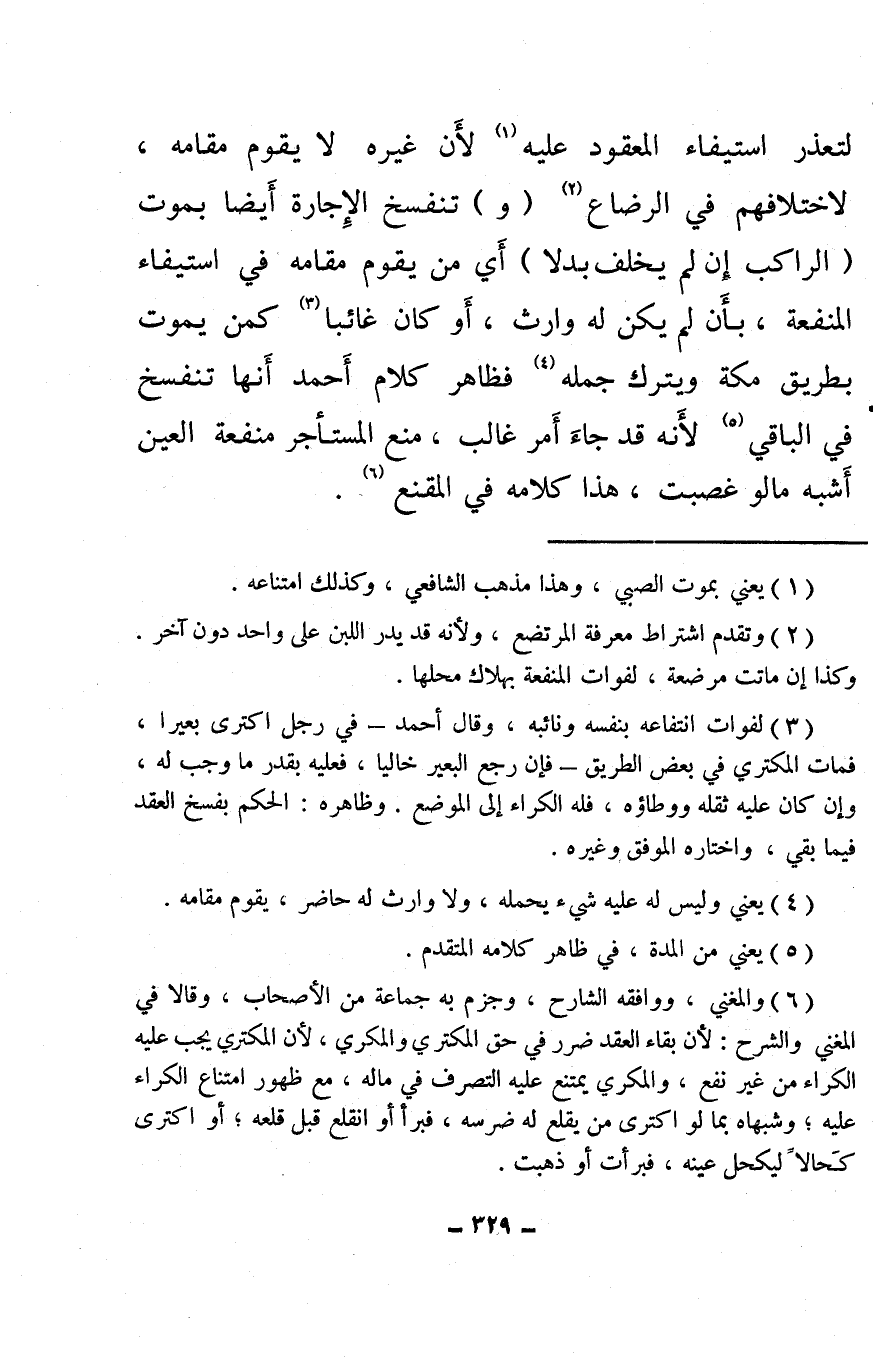 (¬3) لفوات انتفاعه بنفسه ونائبه، وقال أحمد – في رجل اكترى بعيرا، فمات المكتري في بعض الطريق – فإن رجع البعير خاليا، فعليه بقدر ما وجب له، وإن كان عليه ثقله ووطاؤه، فله الكراء إلى الموضع. وظاهره: الحكم بفسخ العقد فيما بقي، واختاره الموفق وغيره.