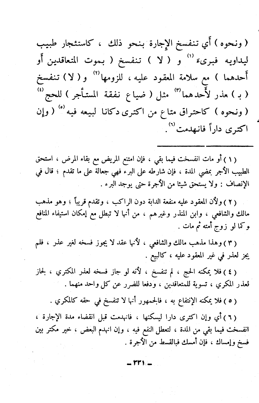 (ونحوه) أي تنفسخ الإجارة بنحو ذلك، كاستئجار طبيب ليداويه فبرئ (¬1) و (لا) تنفسخ (بموت المتعاقدين أو أحدهما) مع سلامة المعقود عليه، للزومها (¬2) و (لا) تنفسخ (بـ) عذر لأَحدهما (¬3) مثل (ضياع نفقة المستأجر) للحج (¬4) (ونحوه) كاحتراق متاع من اكترى دكانا لبيعه فيه (¬5) (وإن اكترى دارًا فانهدمت (¬6) .