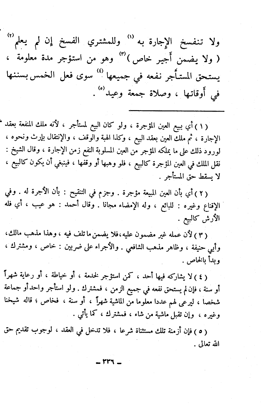 ولا تنفسخ الإجارة به (¬1) وللمشتري الفسخ إن لم يعلم (¬2) (ولا يضمن أجير خاص) (¬3) وهو من استؤجر مدة معلومة، يستحق المستأجر نفعه في جميعها (¬4) سوى فعل الخمس بسننها في أوقاتها، وصلاة جمعة وعيد (¬5) .