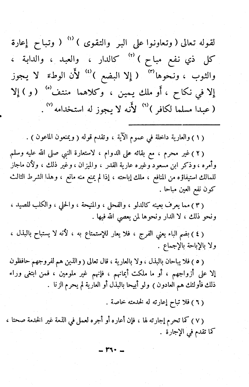 (¬2) غير محرم، مع بقائه على الدوام، لاستعارة النبي صلى الله عليه وسلم وأمره، وذكر ابن مسعود وغيره عارية القدر، والميزان، وغير ذلك، ولأن ما جاز للمالك استيفاؤه من المنافع، ملك إباحته، إذا لم يمنع منه مانع، وهذا الشرط الثالث كون نفع العين مباحا.