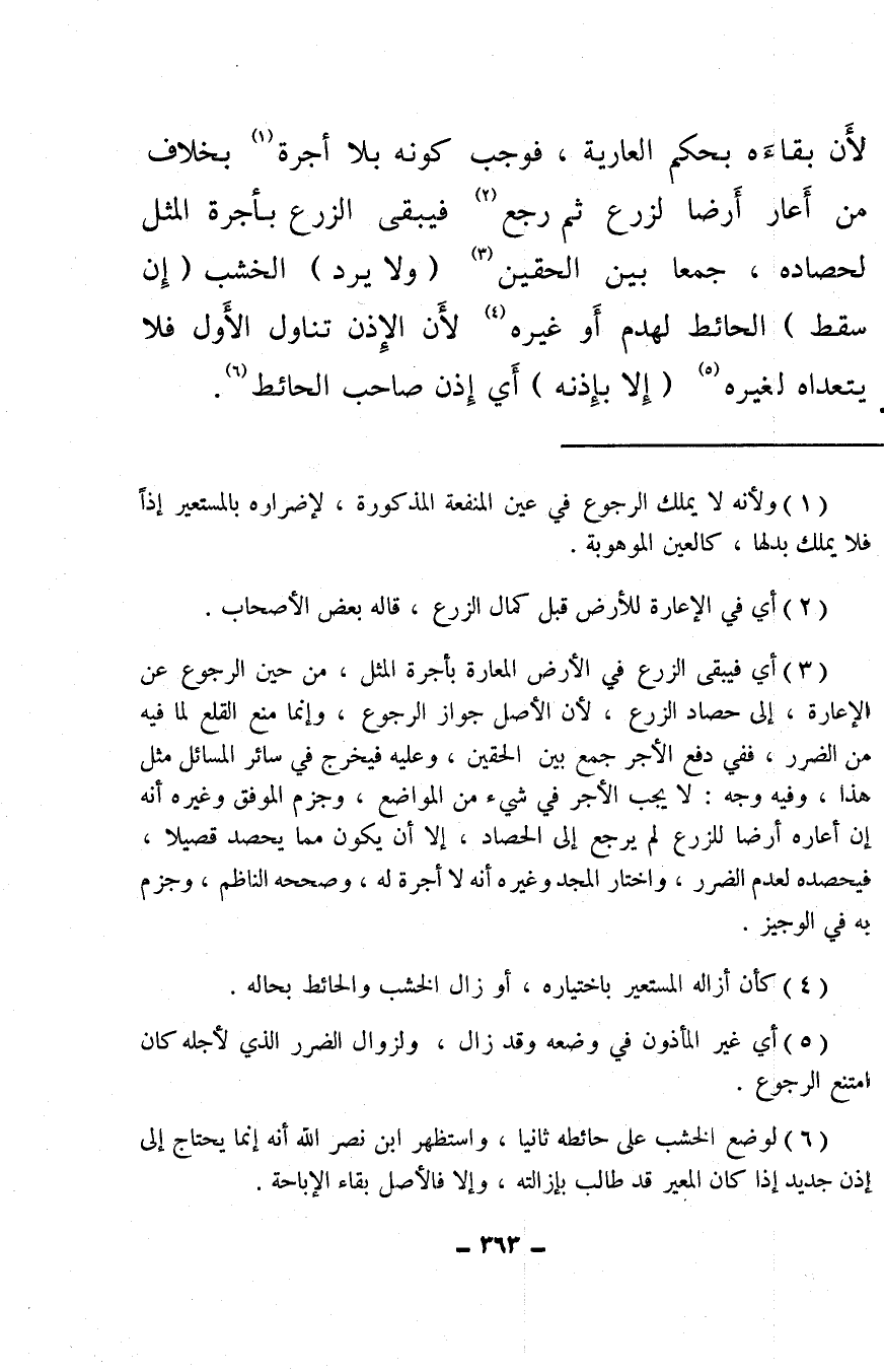 (¬6) لوضع الخشب على حائطه ثانيا، واستظهر ابن نصر الله أنه إنما يحتاج إلى إذن جديد إذا كان المعير قد طالب بإزالته، وإلا فالأصل بقاء الإباحة.