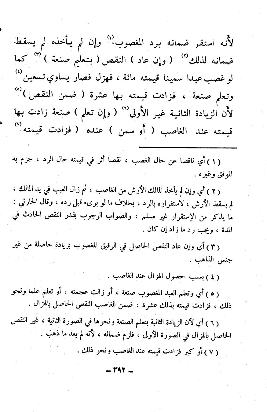 (¬6) أي لأن الزيادة الثانية بتعلم الصنعة ونحوها في الصورة الثانية، غير النقص الحاصل بالهزال في الصورة الأولى، فلزم ضمانه، لأنه لم يعد ما ذهب.