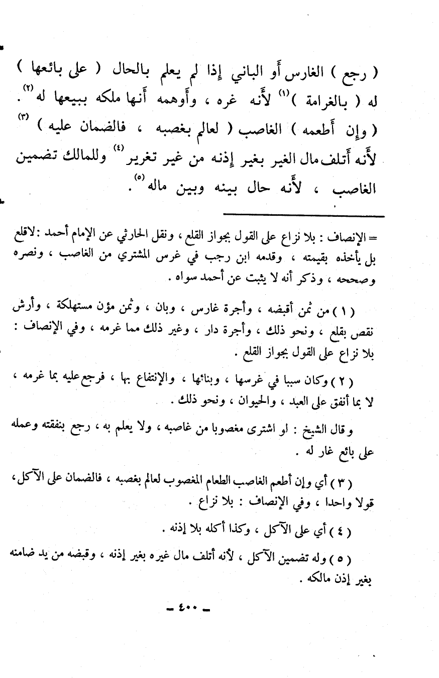 (¬1) من ثمن أقبضه، وأجرة غارس، وبان، وثمن مؤن مستهلكة، وأرش نقص بقلع، ونحو ذلك، وأجرة دار، وغير ذلك مما غرمه، وفي الإنصاف: بلا نزاع على القول بجواز القلع.