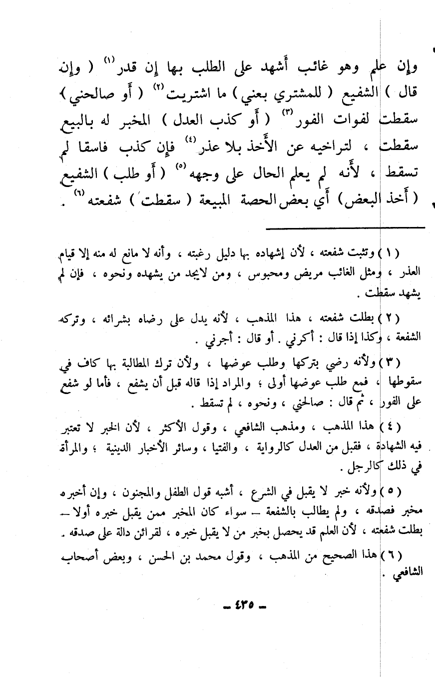 (¬5) ولأنه خبر لا يقبل في الشرع، أشبه قول الطفل والمجنون، وإن أخبره مخبر فصدقه، ولم يطالب بالشفعة – سواء كان المخبر ممن يقبل خبره أو لا – بطلت شفعته، لأن العلم قد يحصل بخبر من لا يقبل خبره، لقرائن دالة على صدقه.
