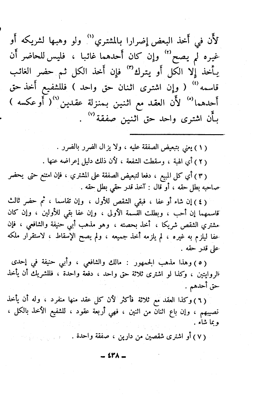 (¬5) وهذا مذهب الجمهور: مالك والشافعي، وأبي حنيفة في إحدى الروايتين، وكذا لو اشترى ثلاثة حق واحد، دفعة واحدة، فللشريك أن يأخذ حق أحدهم.