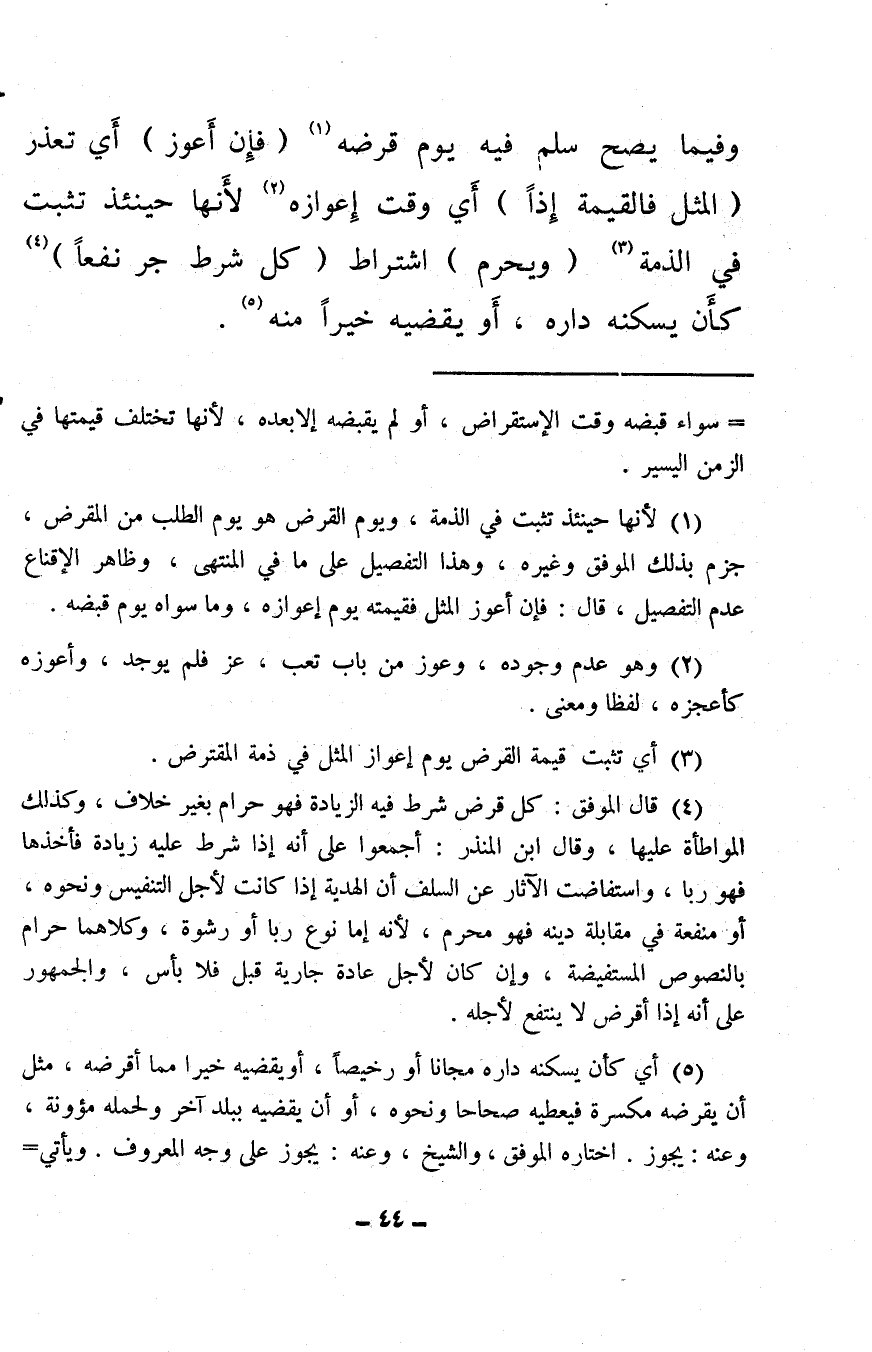 (¬3) أي تثبت قيمة القرض يوم إعواز المثل في ذمة المقترض.