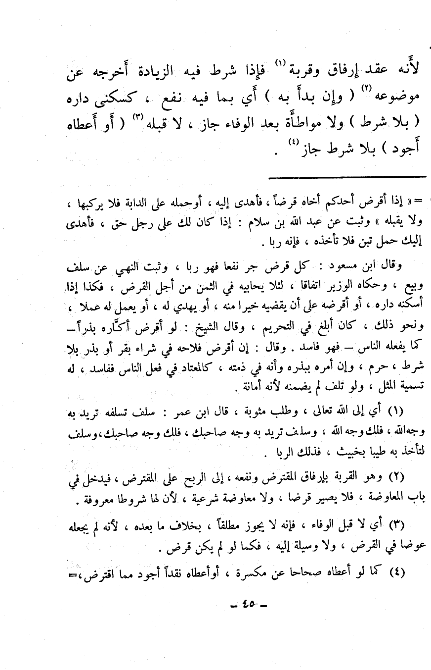 (¬2) وهو القربة بإرفاق المقترض ونفعه، إلى الربح على المقترض، فيدخل في باب المعاوضة، فلا يصير قرضًا، ولا معاوضة شرعية، لأن لها شروطًا معروفة.