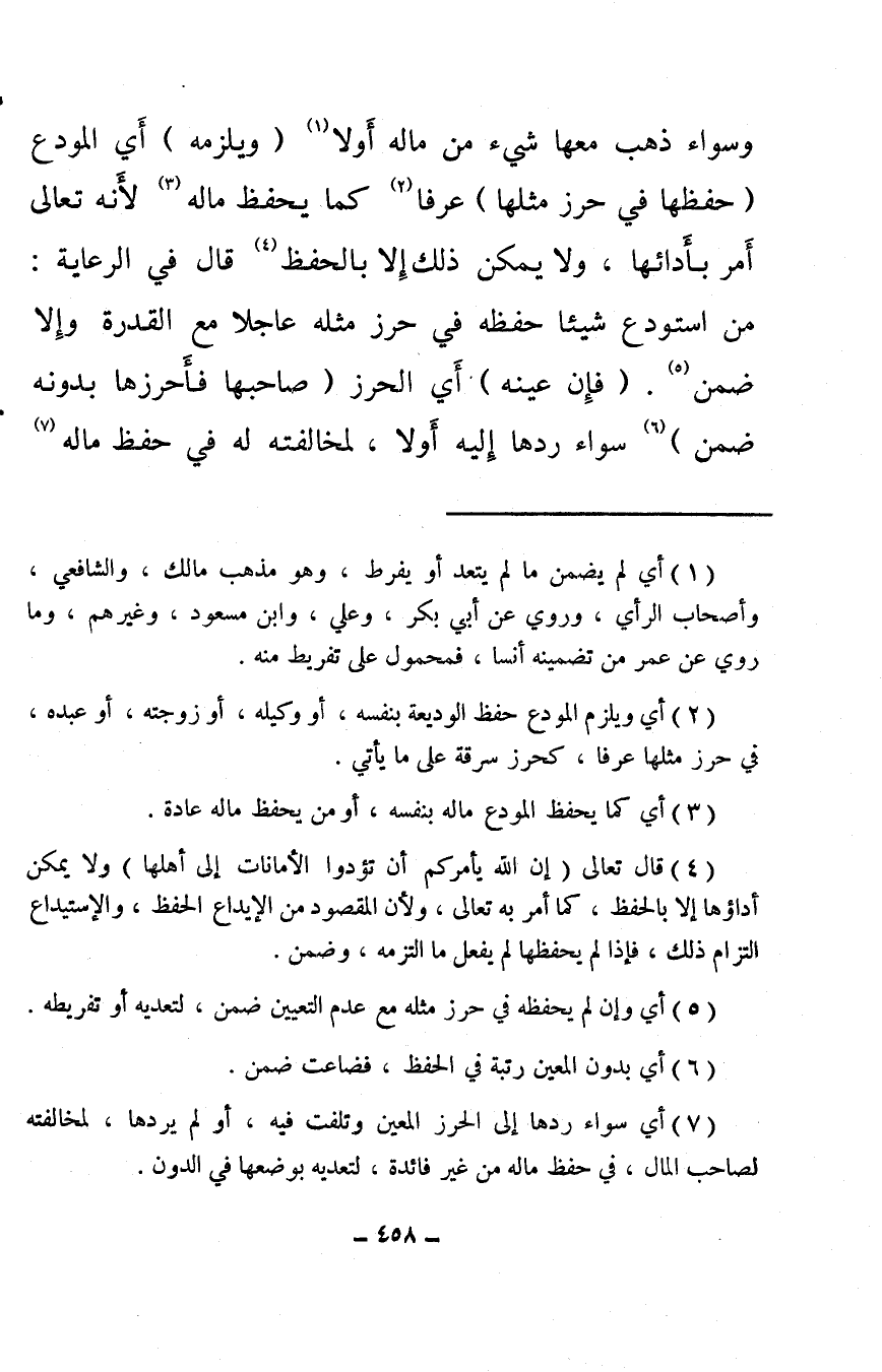 (¬4) قال تعالى {إِنَّ اللهَ يَأْمُرُكُمْ أَنْ تُؤَدُّوا الأَمَانَاتِ إِلَى أَهْلِهَا} ولا يمكن أداؤها إلا بالحفظ، كما أمر به تعالى، ولأن المقصود من الإيداع الحفظ، والاستيداع التزام ذلك، فإذا لم يحفظها لم يفعل ما التزمه، وضمن.