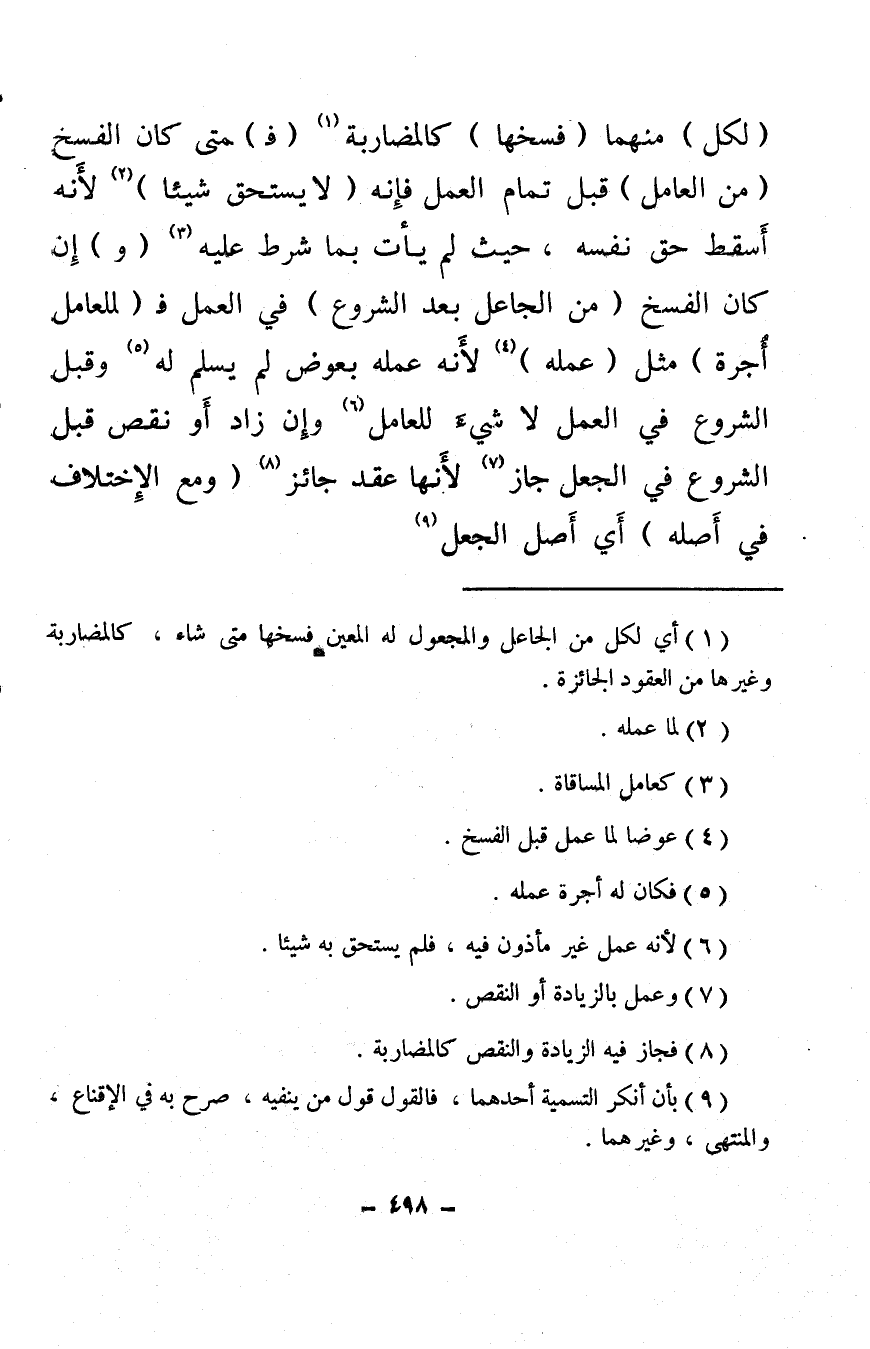 (لكل) منهما (فسخها) كالمضاربة (¬1) (فـ) ـمتى كان الفسخ (من العامل) قبل تمام العمل فإنه (لا يستحق شيئًا) (¬2) لأنه أسقط حق نفسه، حيث لم يأت بما شرط عليه (¬3) (و) إن كان الفسخ (من الجاعل بعد الشروع) في العمل فـ (ـللعامل أُجرة) مثل (عمله) (¬4) لأنه عمله بعوض لم يسلم له (¬5) وقبل الشروع في العمل لا شيء للعامل (¬6) وإن زاد أو نقص قبل الشروع في الجعل جاز (¬7) لأنها عقد جائز (¬8) (ومع الاختلاف في أصله) أي أصل الجعل (¬9) .