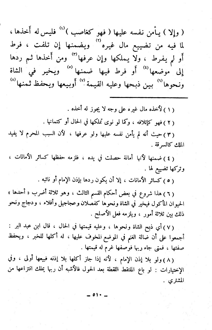 (¬7) أي ذبح الشاة ونحوها، وعليه قيمتها في الحال، قال ابن عبد البر: أجمعوا على أن ضالة الغنم في الموضع المخوف عليها، له أكلها للخبر، ويحفظ صفتها، فمتى جاء ربها فوصفها غرم له قيمتها.