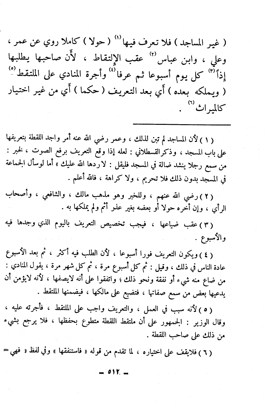 (غير المساجد) فلا تعرف فيها (¬1) (حولا) كاملا روي عن عمر، وعلي، وابن عباس (¬2) عقب الالتقاط، لأن صاحبها يطلبها إذًا (¬3) كل يوم أسبوعا ثم عرفا (¬4) وأجرة المنادي على الملتقط (¬5) (ويملكه بعده) أي بعد التعريف (حكما) أي من غير اختيار كالميراث (¬6) .