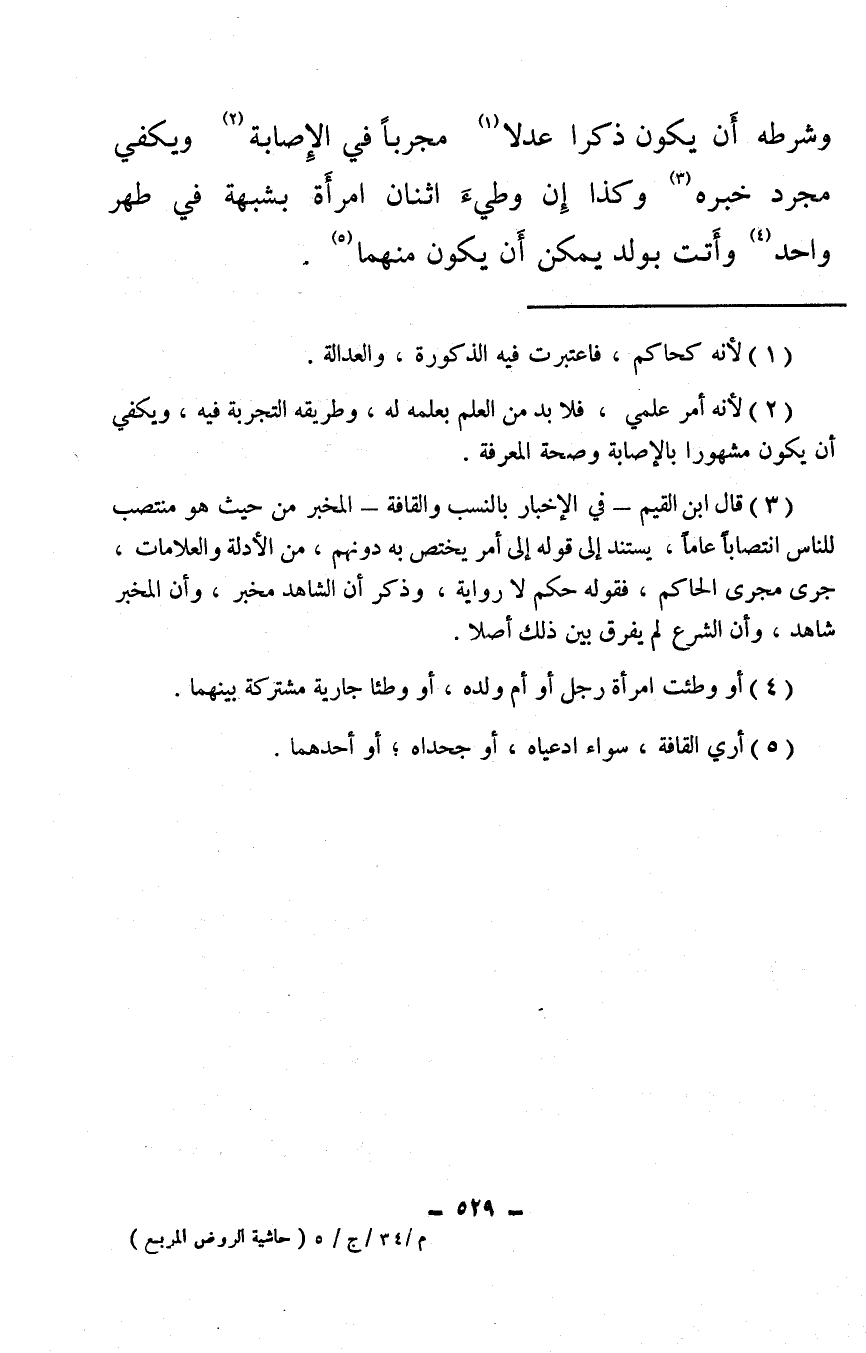 (¬3) قال ابن القيم – في الإخبار بالنسب والقافة – المخبر من حيث هو منتصب للناس انتصابًا عامًا، يستند إلى قوله إلى أمر يختص به دونهم، من الأدلة والعلامات، جرى مجرى الحاكم، فقوله حكم لا رواية، وذكر أن الشاهد مخبر، وأن المخبر شاهد، وأن الشرع لم يفرق بين ذلك أصلا.