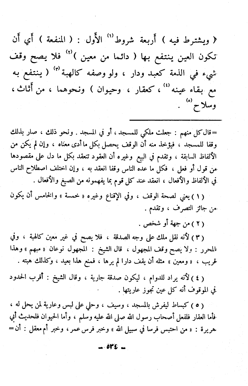 (¬4) لأنه يراد للدوام، ليكون صدقة جارية، وقال الشيخ: أقرب الحدود في الموقوف أنه كل عين تجوز عاريتها.